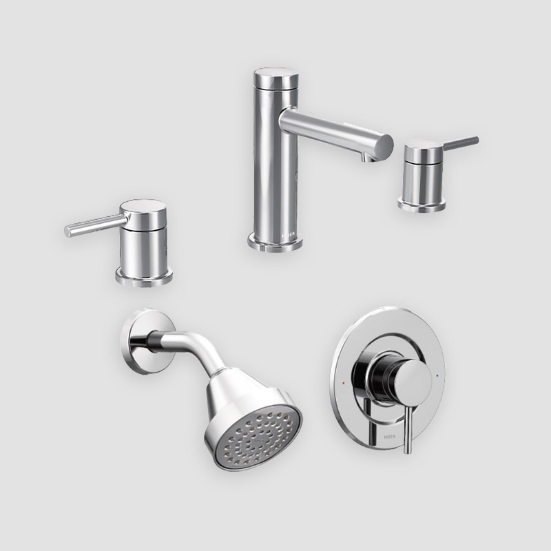 Faucet Package includes both sinks, Roman Tub, and shower fixture. The shower mixing valve handle shall be lever type in a color matching the color selection. NOTE: Towel Bar and TP Holders will be CHROME.